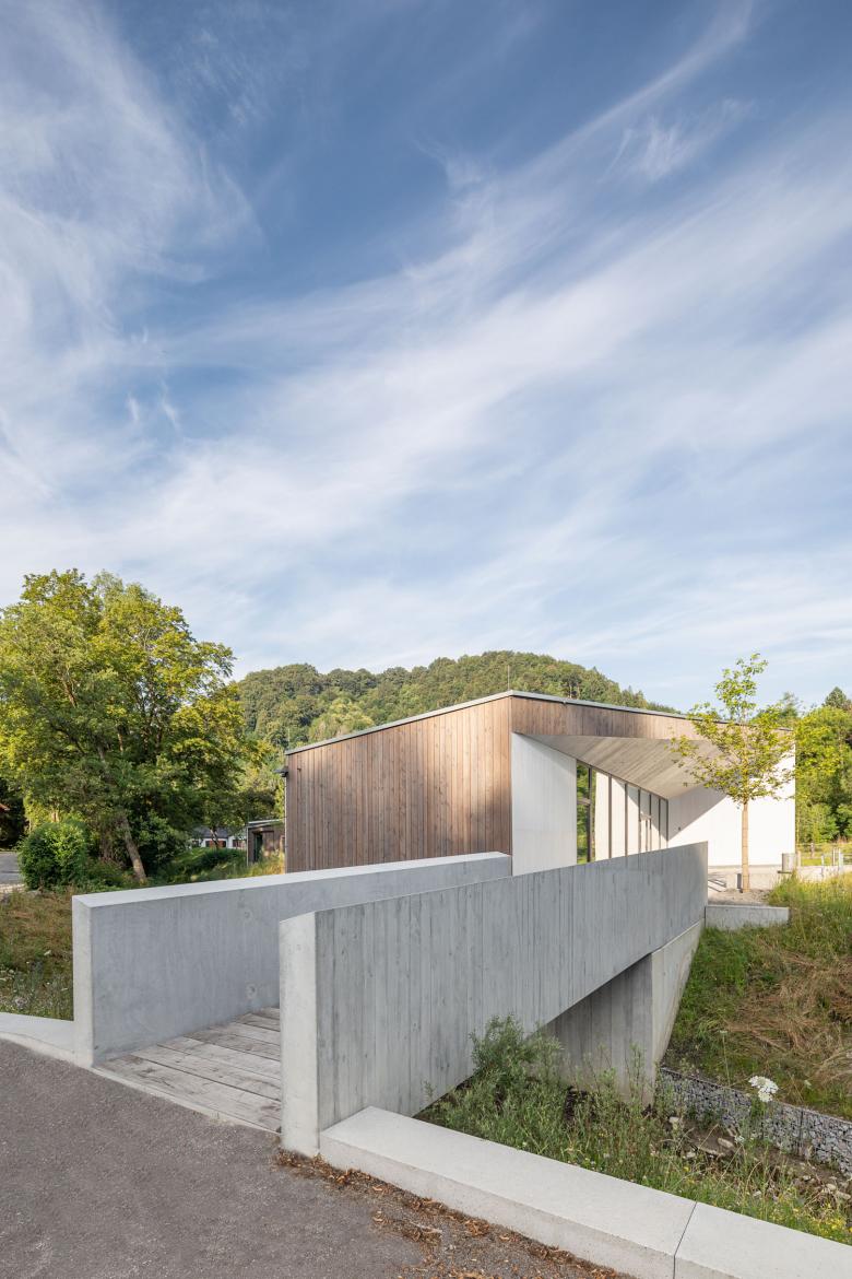 Für den Markt Peißenberg wurde mit einem neuen Bürgerhaus und Jugendzentrum eine „neue Mitte“ geschaffen. Kleine Umformung des Bachbettes und Setzung des Bürgerbüros an markanter Stelle am Bachverlauf schaffen eine sehr spannende und einprägsame Raumsituation.