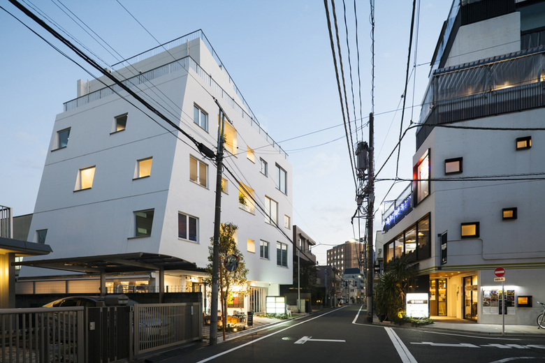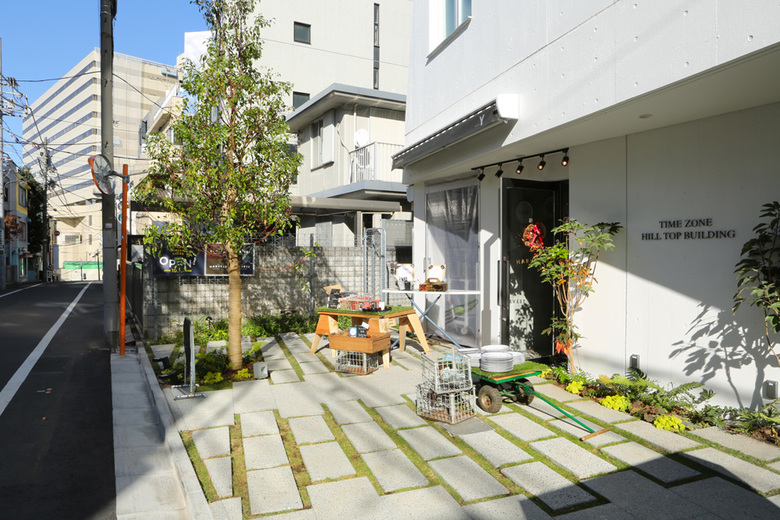 Hill Top Building has an oblique facade in regard to the street, which is a method that was used also for the Terrace building. This set-back method of the two structures has produced a more welcoming entry to the site when approached from the Ebisu station. It has also created an open space for the tenants and the neighbors to hold events and activities.