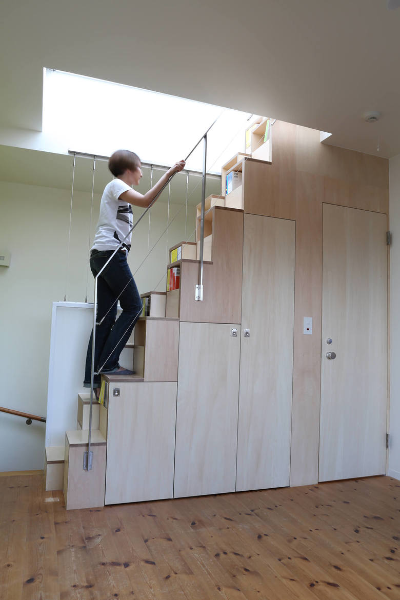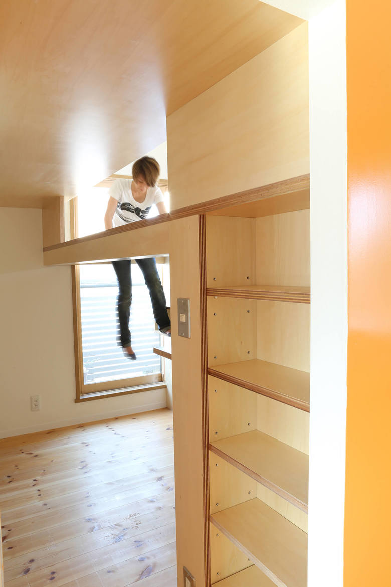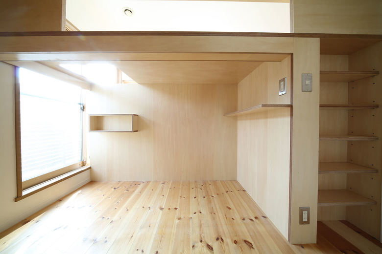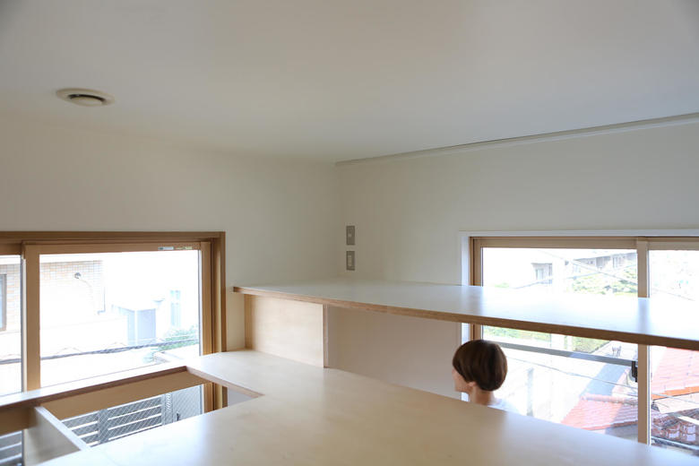 This three storey house is 10 years old residence with a precast concrete structure. We have renovated a part of 2nd and 3rd floor as an owner`s residence, and the rest is for rent. A box was proposed like big furniture to improve usage of kids space by combining beds and desks together. The bottom of the furniture is separated into two bedrooms. The top part is a kids play area, and at the same time, it functions as their study desks. The desk is a corridor ceiling which connect to their bedrooms. While they use their desks, legs will stick out to the corridor. The kids’ area is opened towards the kitchen and the living room so that the family can communicate easily.