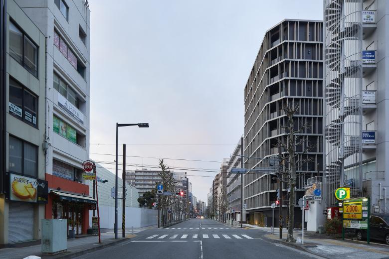 The Kannai Blade Residence - so called because its facades are intersected with thin, bladelike concrete fins - has been designed by the Japanese architectural studio Key Operation Inc. It sits on a corner site within a 5-minute walk of the well-connected Yokohama Kannai Train Station, not far from central Tokyo.