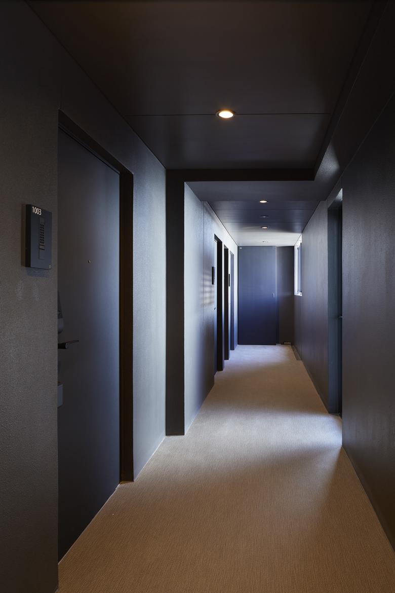 As mentioned above, the Japanese mansion blocks tend to look very similar due to the requirement of the balconies on the facade. We took extra care to make sure that the boilers and air-conditioning units placed outside on the balconies (per the norm in Japan) as discreetly tucked away as possible. Handrails, exterior walls and the balcony ceilings have been painted black. We wanted to bring out the light grey colour of concrete.