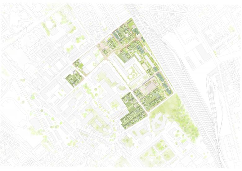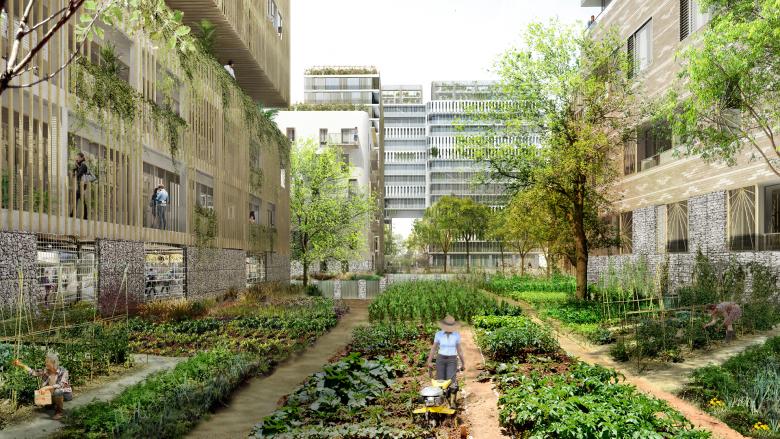 Within a peaceful neighborhood that favors pedestrian mobility, the project offers a city of proximity, united and appropriable. Public space and vegetation are an opportunity for social connection and create actual agricultural landscapes in dense urban areas.