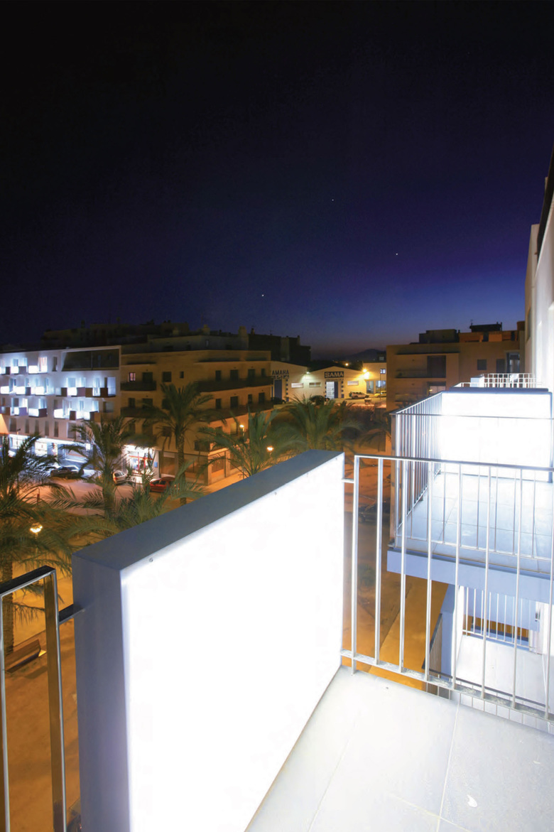 Ampolla is a fishing town of three thousand inhabitants which in recent years has witnessed excessive real estate development. The housing project is located in an area of urban growth parallel to the sea between the railroad tracks and the highway. The new buildings are located in a new courtyard. They feature balconies offering outdoor spaces for all homes. The idea is to enhance the value of public space using the private space of these balconies. The strategy is to modify the three buildings with the same “L-shaped” concrete balconies, transforming them into light boxes which can engage and energise the adjacent paltry public space. Previously unnamed, this square has been dubbed “the Glowing Balconies Square."
