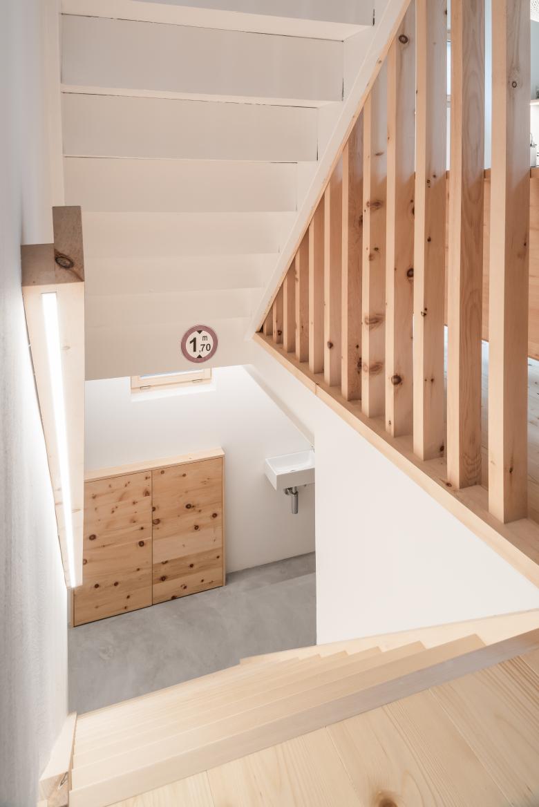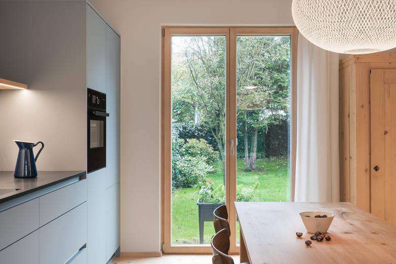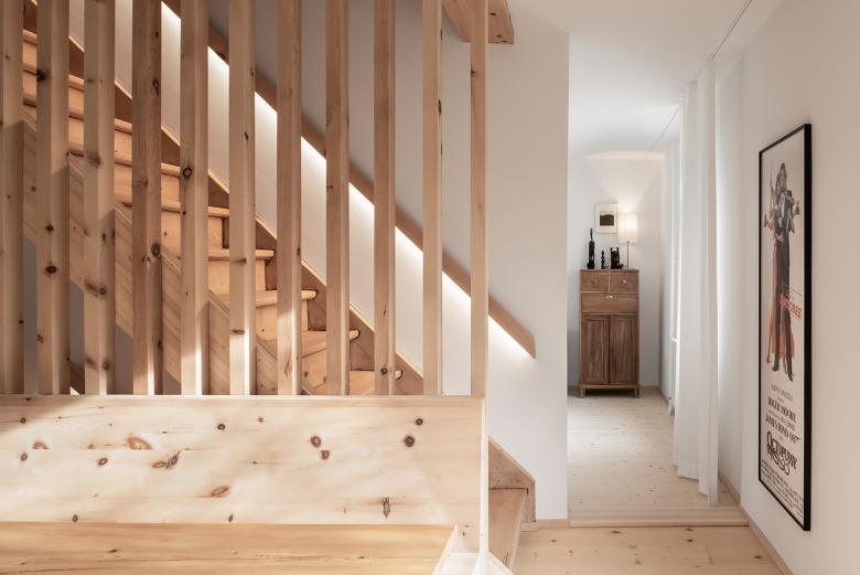 eine versteckte oase in der stadt. die seele vom haus, die gerade treppe in der mitte des gebäudes, verbindet und trennt jeweils 2 räume auf insgesammt 4 geschosse - und das mit nur 40 m2 pro geschoss. klein aber fein, mit dezente farben und natürliche materialien frönen wir das 30er jahre feeling.