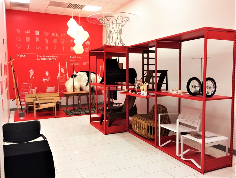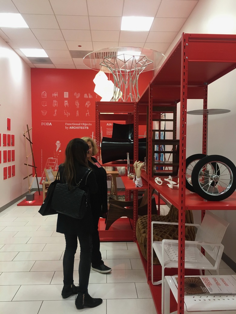 Branding the space in AIA signature red allowed FOBA to pop out into the mall and make an impression on social media, enticing shoppers and Biennial-goers to peruse the objects, selected for their diversity in nature, scale, and function. With shelves bristling with all kinds of objects – from furniture design to textiles and lifestyle accessories, FOBA’s branded design solution puts the wide range of talents of AIA Chicago members on display.