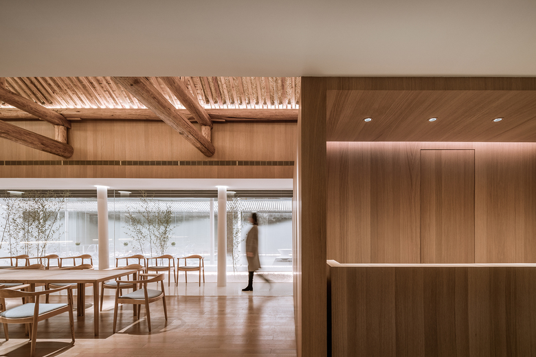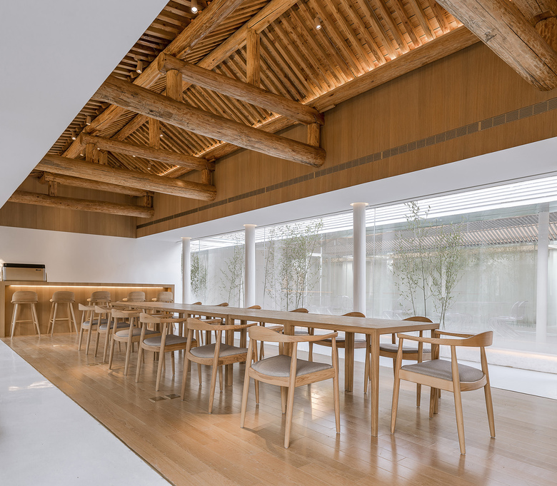 "Layering Yard" is hidden in a traditional commercial block near the Qianmen of Beijing, with an area of about 500 square meters. The original architecture was a quadrangle courtyard commercial building with the characteristics of houses in the Republican period. Compared with residential houses, the houses here are bigger and higher. There is a row of arched doors and windows on the south along the street, and two-story houses on the north. Before the renovation, the housing structure was completely rebuilt; with the courtyard there were no doors, windows or walls, but exposed rough wooden structure beams. It is said that it was a brothel in the Republican period, then transformed into a bakery after the foundation of China, and later was left unused after the reconstruction. In the future, the building will be a complex for public activities and living. Therefore, while improving the quality of construction and infrastructure, this renovation focused on creating experience in particular scenes based on the Hutong environment, aiming to attract urban population who have increasingly diversified consumption demands.