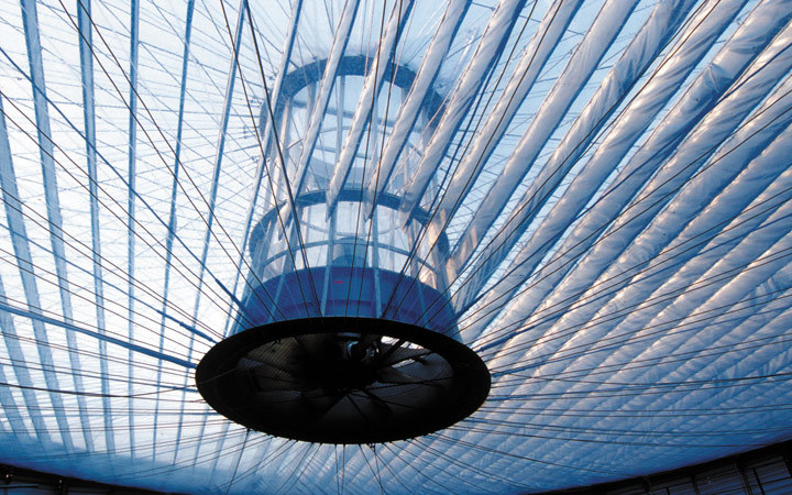 A Pavilion of a Cycle Economy A multidisciplinary synthesis of the arts concerning architecture, stage design, graphics, sound, light and film and: an artificial tornado. The past, present and future of a cycle economy are brought to life in the arena of man, nature and technology, which is presented within an area of 1.600 square meters over three ramps.