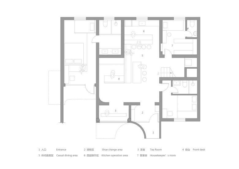 We divided the rectangular courtyard of 100 square meters into several small semi-enclosed courtyards, trying to create an inner courtyard environment. Each courtyard will have a small tree as the protagonist (since it is completed in winter, the tree has not been planted), an organic connection is formed between the courtyards. A series of interactions between tearoom, guest rooms and the courtyard are created under the multi-level space. When users enter the building, they can read the interior of the building in their own way and perspective, so the container function of the building is reflected. The shadow moves with the light, and the scenery changes with people, making the architectural space full of poetry.