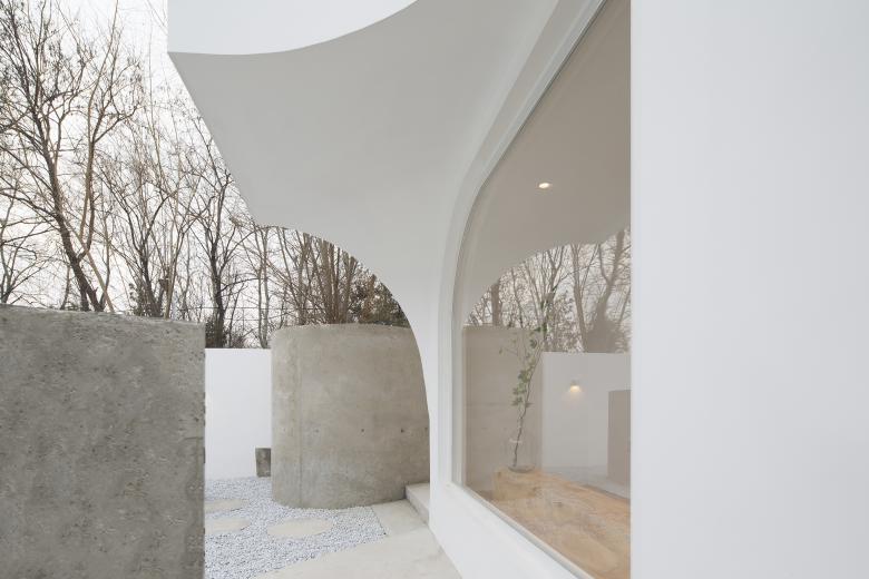 Free flow – The design language of the architectural and interior is based on a quarter arc, which flows freely in the space with a rigorous attitude and increases the tension of the building by means of geometric composition. The outward extension of the building block on the facade is close to nature in a flowing posture, bringing the distance between architecture, nature and people closer. The white facade makes the building abstract and sculptural, through the rendering of white material, the boundary between the wall and the top is blurred. The flowing space and natural light blend together to bring people a pure experience and imagination space.