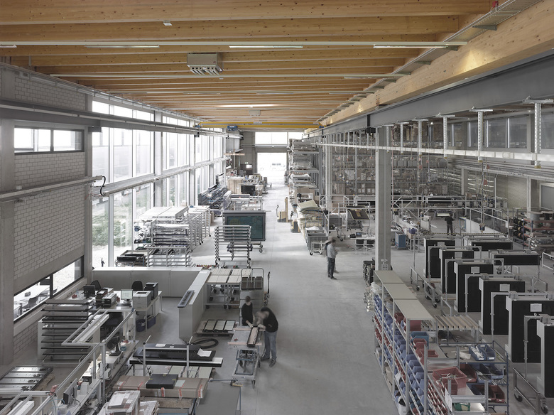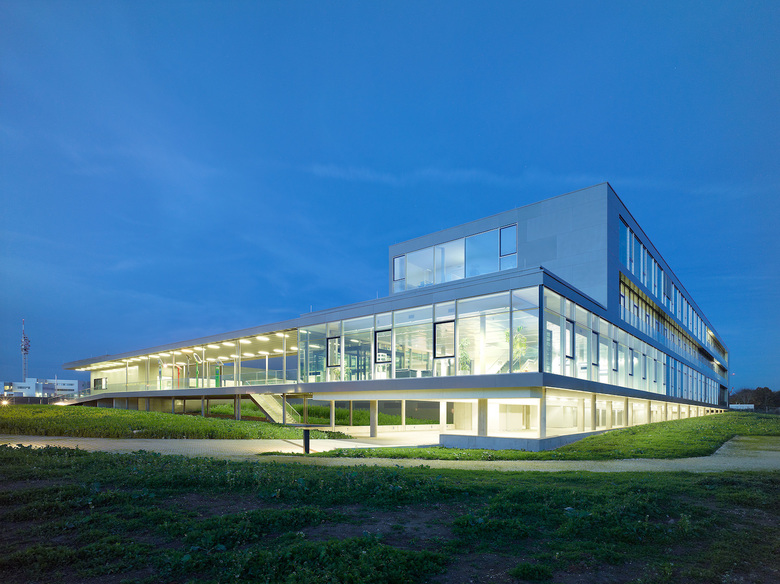 Ein Aspekt des Entwurfes war es, den Anteil an versiegelter Fläche zu minimieren; dies ergibt sich durch intelligente Stapelung von Büro- und Produktionsflächen sowie die Platzierung eines Parkdecks in der Landschaftsfuge zwischen bestehendem Gelände und Gebäude. Das nachhaltige Energiekonzept inkludiert ein Maximum an natürlicher Lüftung und Belichtung.