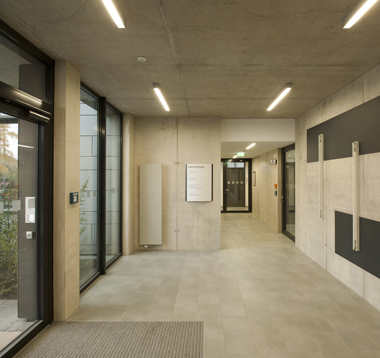 Der Betrieb für Stadtgrün, Abfallwirtschaft und Straßenreinigung in Erlangen ist für unterschiedliche Dienstleistungsbereiche verantwortlich, wie beispielsweise für Planung und Unterhalt von Grünflächen, Stadtförsterei, Restmüll- und Bioabfuhr, Sperrmüllsammlung sowie Straßenreinigung und Winterdienst. Das bestehende Verwaltungsgebäude sowie das Pausen- und Umkleidegebäude des Betriebshofs am Standort in der Stintzingstraße war ziemlich in die Jahre gekommen und bot den Mitarbeitern kein zumutbares Arbeitsumfeld. Daraus entwickelte sich der Wunsch eines Neubaus, der neben dem Eigenbetrieb auch weiteren Ämtern der Stadt Erlangen (im 2.+ 3.Obergeschoss) eine neue Adresse bietet.