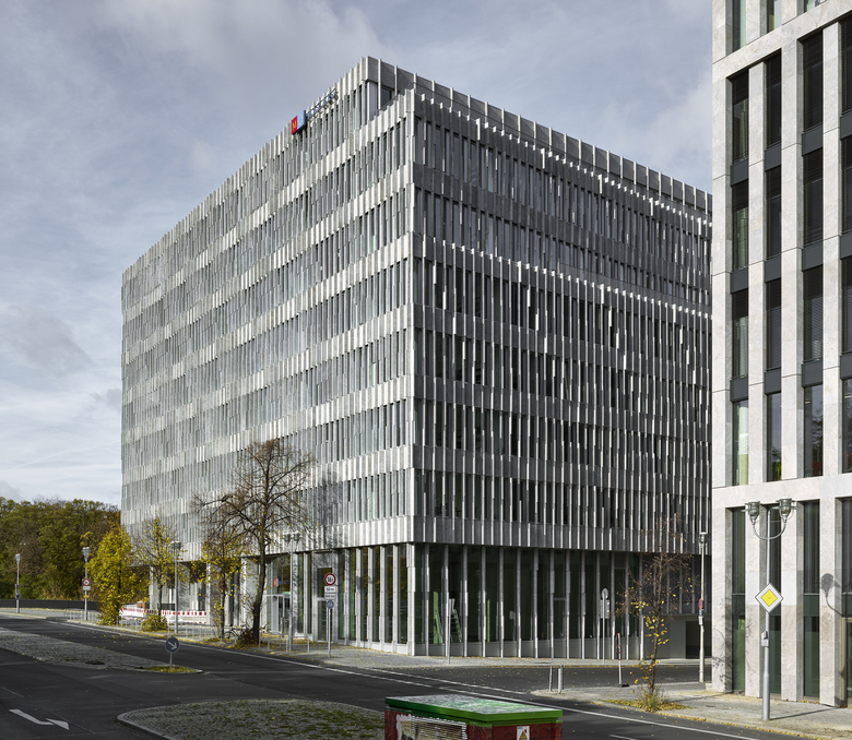 In der Bertha-Benz-Straße unmittelbar südwestlich des Berliner Hauptbahnhofs und gegenüber des Neubaus für das Bundesministerium des Inneren entstand als vierter und letzter Baustein des so genannten ‚Lehrter Stadtquartiers‘ ein neungeschossiges Bürogebäude mit gut 25.000 m2 BGF. Das Haus steht im direkten Dialog mit den drei anderen Bausteinen des Ensembles, für das klare Regeln zu Gebäudeform, Höhe und Materialität vorgegeben waren. Gleichzeitig erhält es durch seine Fassade aus filigranen Naturstein-Finnen ein eigenständiges, elegantes Erscheinungsbild.