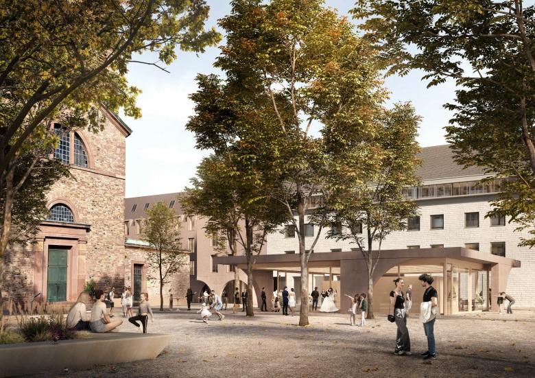 So entsteht auf der Ostseite der Kirche mit dem Abriss des alten Pfarrhauses und der Neuordnung der Nutzungen wie von selbst das Forum St. Stephan der katholischen Gesamtkirchengemeinde Karlsruhe.