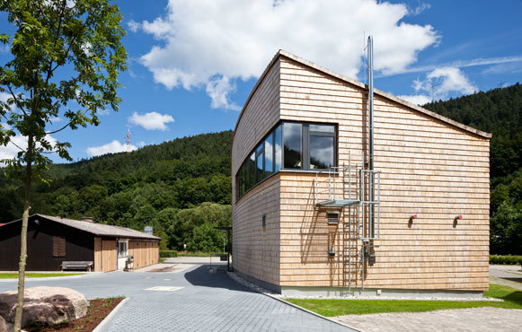 Der forstliche Hauptstützpunkt Calmbach im Enztal im nördlichen Schwarzwald wird um ein Betriebsgebäude erweitert, das neben einem großen Schulungsraum auch eine Werkstatt, Umkleide- und Sanitärräume sowie mehrere Büros aufweist.