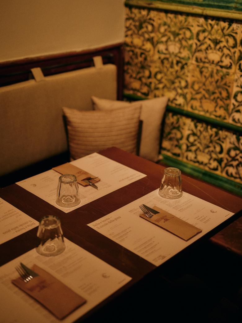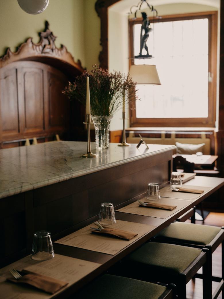 Interior Design der Pizzeria beim Parkhotel Mondschein in Bozen.