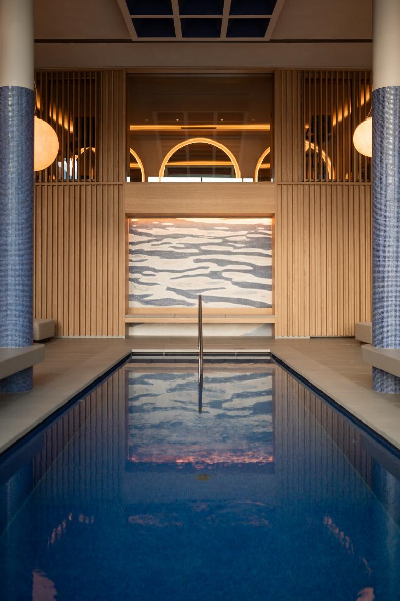 Interior Design des neuen Innen- und Außenpools und der Fitnessbereiche im Hotel Castel.