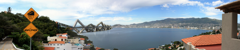 The first settlements in Acapulco were established on the northern side of the bay on what is now considered the “Old Town” or “Old Acapulco”. The decision to construct the international airport on the middle of the strip between the “Tres Palos” lagoon and the ocean has encouraged the city to expand ever-further south. The urban growth past the Puerto Marques Bay has been named the New Acapulco or Acapulco Diamante and is comprised of luxurious high-rise tower apartments on the beach front. The tall mountains divide the city in two and the main connecting routes, the coastal avenue around the bay and the scenic highway, have soon become overloaded, engendering huge traffic problems and literally mutating into linear parking lots.