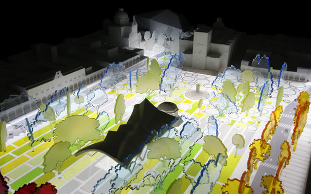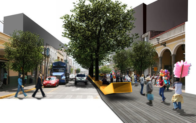 This way people would mingle in the center for greater lengths of time, making it safer at night and injecting it with life. Other significant issues that needed solving were the reduced density in the blocks surrounding the main square (we took them from one level to two and three stories) and the lack of vegetation creating an arid environment.The Master Plan for the Historic Center identifies seven specific areas and grants them a particular character and activity that distinguishes them from one another: The Gastronomic Walkway, The Commercial Avenue, The Main Square (known as the “Zócalo”), The Fountain Plaza, The White Plaza, The Access Plaza (known as “Jardín del Rico”) and Reforma Avenue. All these areas have a special vegetation palette, lighting, street furniture and pavement design as well as the precise activity they promote. Besides its aesthetic quality, the tree densification program seeks to create ample shade on the streets to promote walking since Guzman has a very warm climate almost all year round.