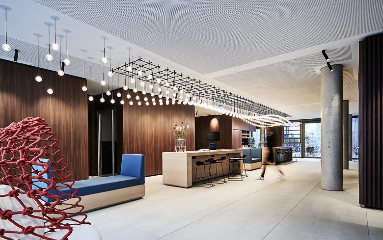 Mitten in Berlin bietet ein neuer Bürobau eine spezielle Infrastruktur für Unternehmen aus der Healthcare-Branche. Das Helix Hub ermöglicht mit einer modernen Office-Welt vielfältige Formen der Zusammenarbeit. Beim Innenausbau realisierten brandherm + krumrey maßgeschneiderte Raumkonzepte. Open Workspaces wechseln sich mit wohnlichen Bereichen für informellen Austausch und Orten für konzentrierte Einzelarbeit ab. Ein Ambiente mit hochwertigen Materialakzenten bietet ein optimales Umfeld für agile Arbeitsformen im Sinne von New Work.