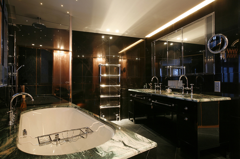 Ein ebenso gemeinsames Merkmal ist, dass sämtliche verwendete Materialien hochwertig und luxuriös sind. Die Wände sind z.B. teils mit Holzpaneelen aus Edelhölzern verkleidet, teils mit Seide bespannt oder in italienischer Marmormehltechnik gespachtelt. Eine Wandnische im Wohnzimmer wurde mit Rochenhaut verkleidet. Die Schranktüren im Schlafzimmer sind mit Ziegenpergament belegt. An mehreren Stellen in der Wohnung wurden Swarovski-Kristalle verwendet, z. B. im Teppich im Schlafzimmer, an diversen Lichtschaltern und Leuchten und an einigen Möbelgriffen.