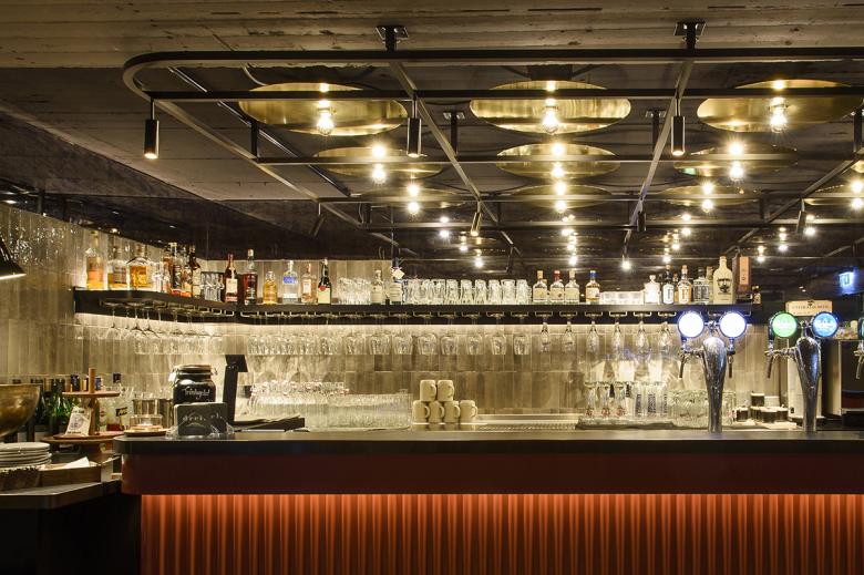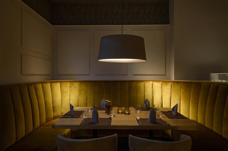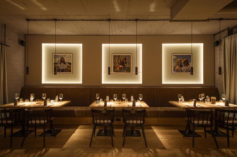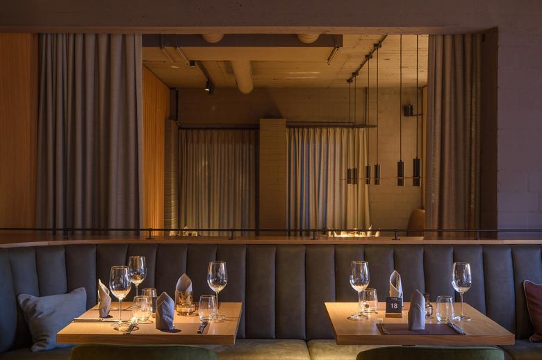 Coming from the Paradeplatz, the guest is drawn through various layers of space - the historic Main Guard with entrance area and fireplace room and, in the extension, the bar area with a second entrance and a seating area separated by wooden slats - to finally find themself in the large, open part of the restaurant. Diverse views and expansive lines of sight enhance the generous ambiance. The rooms can be used in different ways depending on the requirements of the daily routine; curtains offer the possibility of small gatherings in a more intimate atmosphere. All areas are staged and emphasised by highlights such as lighting, a fireplace or special furniture elements like the bar counter. The resulting views through and back remain stimulating in this finely tuned and exciting spatial structure.