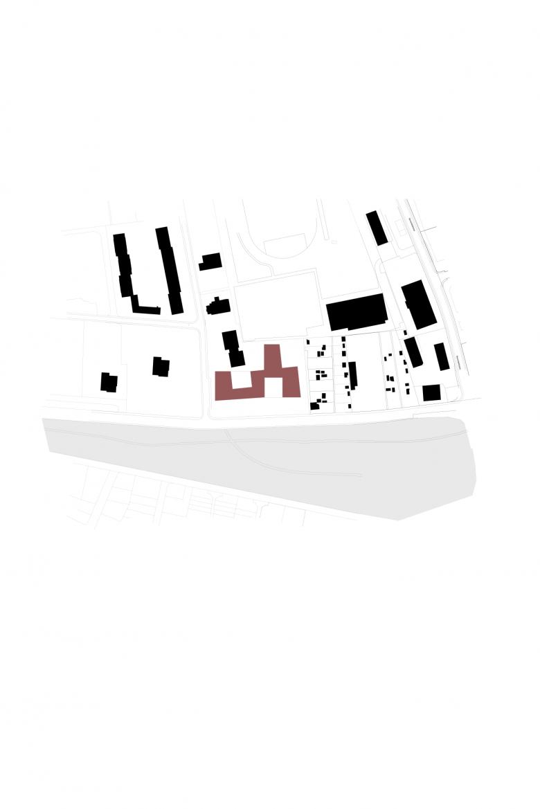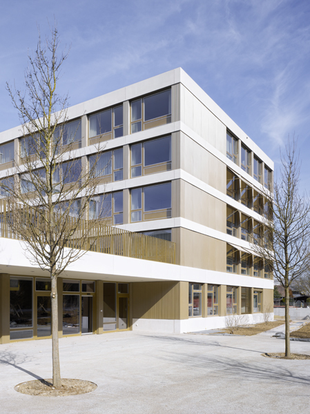 Der vier-und fünfgeschossige Neubau legt sich ungerichtet auf den Perimeter. Das gedrungene Volumen reagiert auf die Typologie der Nachbargebäude und baut mit seiner flächigen Ausdehnung eine Spannung zu den Hochhäusern im Westen und den Wohnscheiben im Norden der Parzelle auf. Durch seine maximale Gebäudelänge erreicht es eine grosse räumliche Präsenz und verleiht dem APH Birsfelden eine neue Identität. Es gelingt ihm zwischen der undicht bebauten Ebene im Nordosten, der starken Ost-West-Achse entlang dem Waldhügel im Süden und der hohen Bebauung im Nordwesten zu vermitteln. Anstelle eines Konglomerats von Pflegeheim und Alterswohnungen entsteht ein betrieblich und in seinem Ausdruck eigenständiges Alters- und Pflegezentrum.