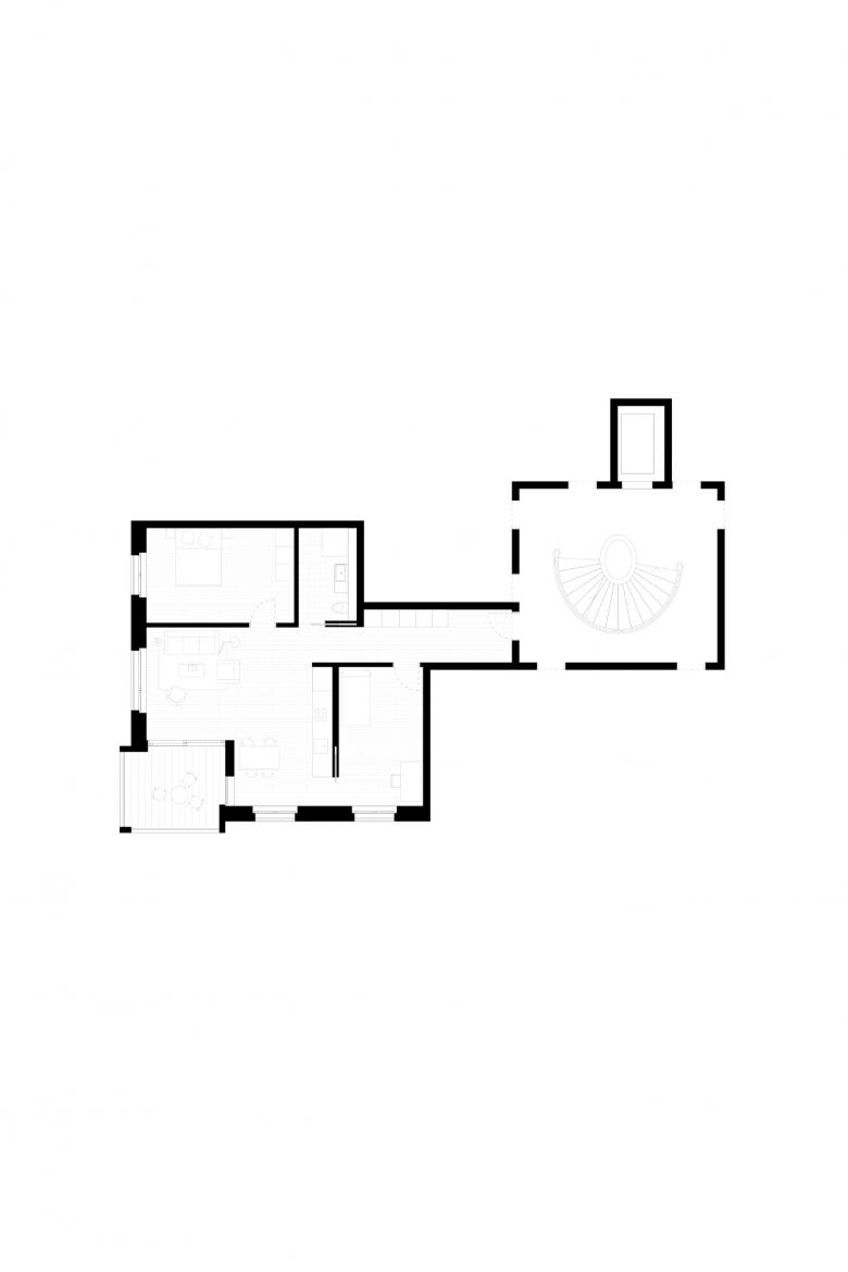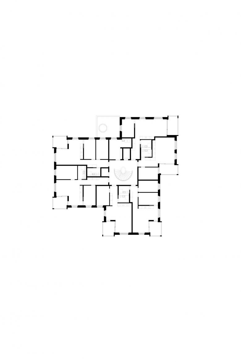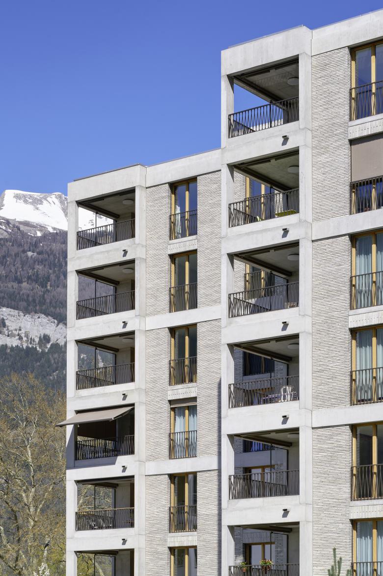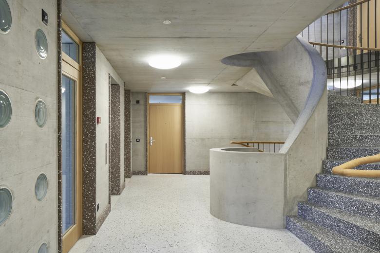 Der Neubau ist als Hochparterre konzipiert, beinhaltet 39 Wohnungen auf sieben Normgeschossen und einem Attika. Pro Regelgeschoss werden sechs Wohnungen erschlossen; alle Wohnungen haben eine Belichtung von 2-3 Himmelsrichtungen. Ihre Loggias liegen jeweils in den Gebäudeecken.