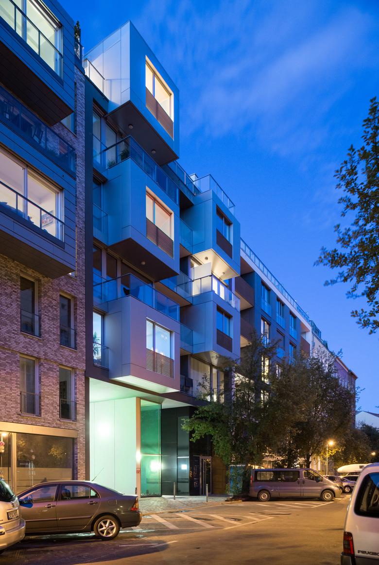 A residential building project is taking shape in one of the most lively residential areas of the Eastern part of the city, comprising approx. 120 apartments and underground parking. On the large site at the corner of Choriner Strasse and Zehdenicker Strasse four new buildings form a closed perimeter block, and five more buildings are being realized within the block. Within the framework of this project we are designing two residential buildings in the perimeter block on Zehdenicker Strasse as well as the whole basement, and we have taken over the design co-ordination of all the participating architects.