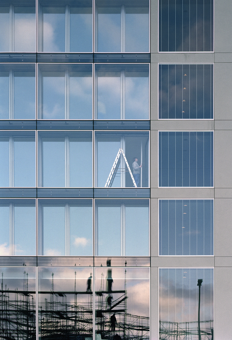 By night, the artificial lighting of the three-dimensional cells with integrated, storey-high LED strips shows an original symbiosis of light and architecture. The strong architectural identity is effective in urban design terms while at the same time functioning as a marketing tool. The building was conceived, in accordance with the latest design criteria, to be flexible and economical, with standards of amenity appropriate to its market position. It is highly efficient and makes maximum use of the site.