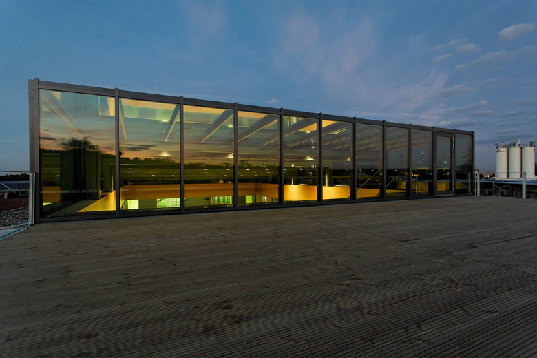 Sustainability – On account of the construction method in the passive house standard the energy consumption of the Etrium considerably differs in comparison to conventional office constructions. The need in heating warmth amounts to < 10 kWh in the year per square metre, the primary energy consumption is minimised on 116 kWh / m ² (including stream for the working equipment). An active heating system and chill system can be renounced for these reasons completely. The roof is additional equipped with a photovoltaik arrangement (34.2 kW) which offers with 30,000 kWh of solar energy a substantially contribution to the cover the rest power demand. An extensive green roof and the collection and use of rainwater are other components of the lasting, resources careful planning.