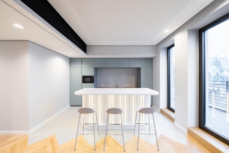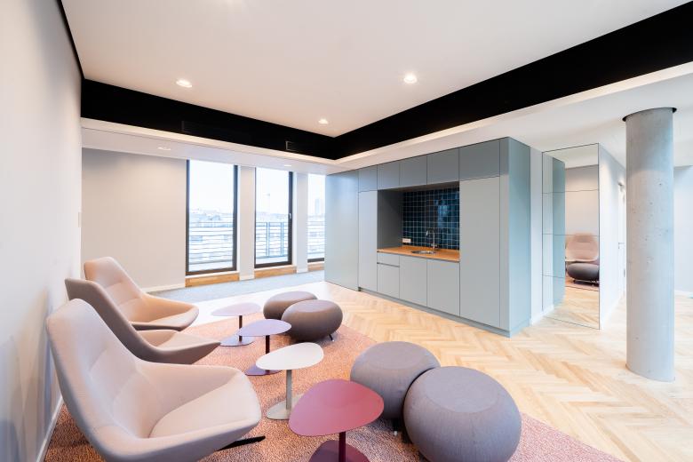Für die international agierende Anwaltskanzlei Addleshaw Goddard LLP übernahm CSMM die Konzeption und Ausbauplanung für die neuen Büroflächen im „Alten Wall“ in Hamburgs Innenstadt. Mit dem Entwurf für diesen ersten Standort der Kanzlei in Deutschland entstand für die Anwälte, die vorher in Co-Working Spaces untergebracht waren, ein prestigeträchtiges Zuhause. Das Team von CSMM Team konzipierte eine agile Bürolandschaft, die die angelsächsische Arbeitswelt und ihre räumliche Offenheit, mit der in Deutschlands Kanzleien, überwiegend konservativ in Einzelbüros organisierten, vereint. Das Ergebnis ist eine Mischung aus individuell gestalteten Räumen mit Einzel-, Doppelzimmern und Open-Space Bereichen, die der Arbeitskultur aus beiden Ländern gerecht wird und mit einer Vielzahl an Möglichkeiten für die Optimierung der Zusammenarbeit sorgt. Sämtliche Büros sind entweder um die Aussenfassade oder rund um den Lichthof angeordnet, wobei die schönsten Flächen mit Blick über die Hansestadt und umlaufender Dachterrasse ganz demokratisch der gesamten Belegschaft und den Mandantenzonen vorbehalten sind. Die individuelle Farb- und Materialgestaltung für die Kanzlei wurde gemeinsam mit den Mitarbeiter*innen erarbeitet, die sich in einem Workshop sehr engagiert mit den Themen Atmosphäre und Materialität auseinandergesetzt haben. So entstand ein wohnliches Konzept mit frischen Pastelltönen, das Elemente des historischen Bestandes aufnimmt und mit hochwertigen, modernen Materialien und verspielten Details neu in Szene setzt.