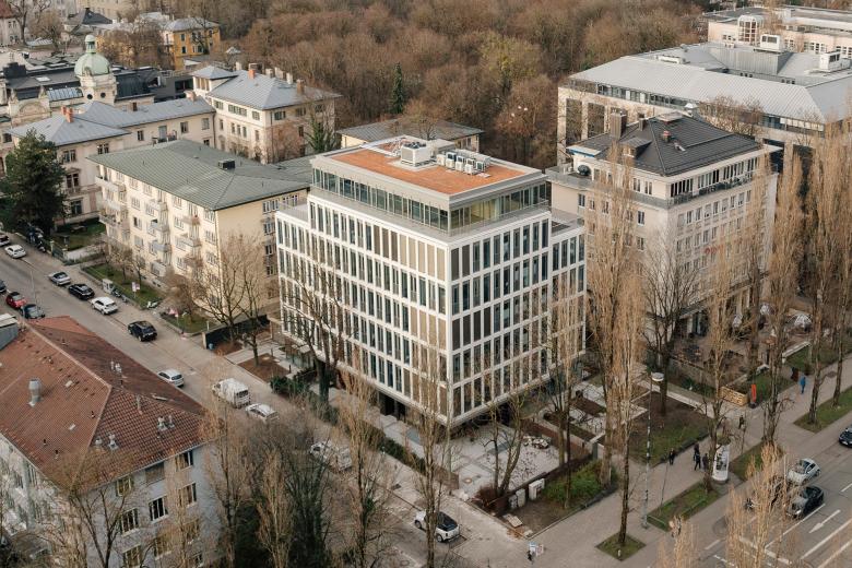 Mit dem Refurbishment des Büro- und Geschäftsgebäudes aus den 1980er Jahren wurde die Leopoldstraße 7 in eine zukunftsweisende Architektur transformiert. Durch eine umfassende Sanierung wurden die Gebäudestruktur modernisiert, die Büroflächen erweitert und eine neu gestaltete Fassade geschaffen, die sowohl ästhetische als auch energetische Vorteile bietet. Die neu strukturierten Innenräume ermöglichen flexible Arbeitsplatzlösungen mit offenen und geschlossenen Bereichen, optimaler Tageslichtnutzung sowie großzügigen Dachterrassen für eine hochwertige Arbeitsumgebung. Ein besonderer Fokus lag auf Nachhaltigkeit, indem ressourcenschonende Gebäudetechnik integriert und eine LEED-Gold-Zertifizierung erreicht wurde, während die graue Energie des Bestandsgebäudes erhalten blieb. Die Revitalisierung wertet nicht nur die Funktionalität des Gebäudes auf, sondern bewahrt auch seine kulturelle Bedeutung und stärkt seine Rolle als lebendiger urbaner Anlaufpunkt im Münchner Stadtbild.