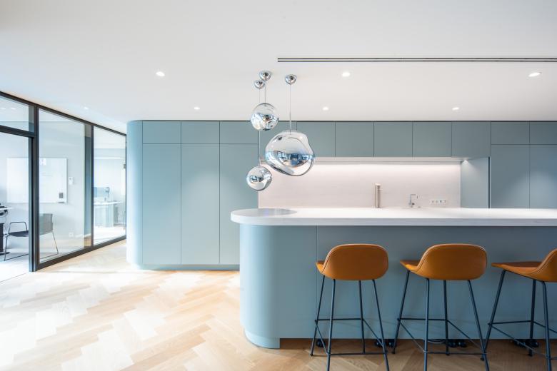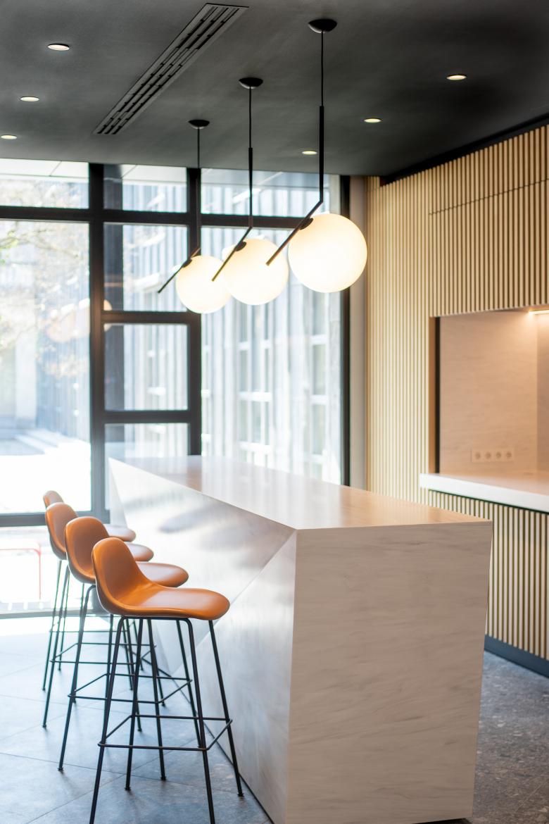 Innovationskraft und Effizienzsteigerung sind seit jeher prägende Merkmale der gelebten Linklaters-Kanzleikultur, an der sich jedes Bürokonzept messen muss. In gemeinsamen Workshops sowie einer Belegungsstudie ging CSMM der Frage zur künftigen Arbeitswelt der international agierenden Sozietät auf den Grund. Im Sinne von einer effizienteren Flächennutzung wurde besonders die Innenraumgestaltung neugedacht und intelligenter gelöst. Die Konzeption zeitgemäßer Arbeitsräume für Linklaters erstreckt sich von gemeinschaftlichen Büros über Rückzugsorte für vertrauliche Gespräche mit Mandanten bis zu informelleren Kommunikationsflächen. Natürliche Materialien wie das Eichenparkett sowie optisch und haptisch hochwertige Mineralwerkstoffe erzeugen ein angenehmes, wohnliches Ambiente.