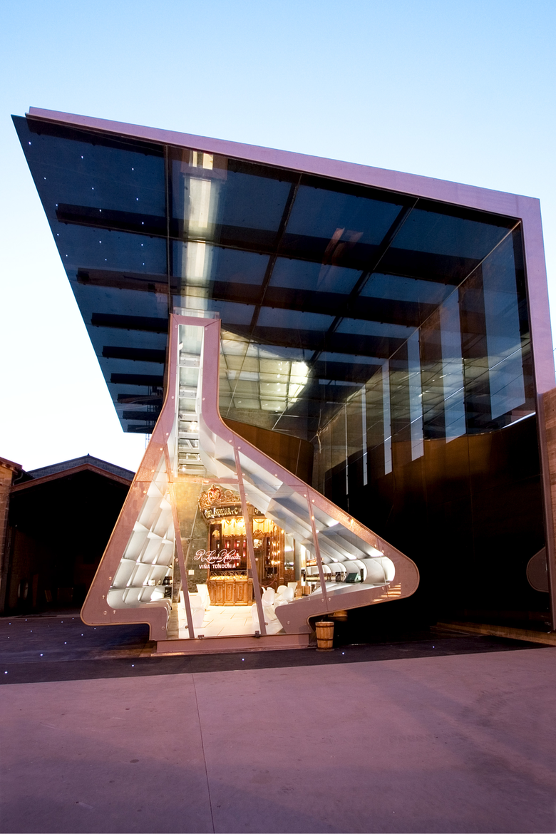 As local architects, in collaboration with Zaha Hadid Arch., we have experimented with the design of architectural spaces, innovative structural solutions and new materials, which serve as a renewal reference for a centennial family winery. The result has added new values relating to the traditional culture of Vina Tondonia. The reception building, houses inside the primitive pavilion that Viña Tondonia showed in 1910's fair. The new modular container was initially conceived to participate in new fairs, and finally stands as a point of access for visitors to the winery .Both La Frasca and the exterior spaces, the new access to the cellar or the tasting rooms incorporate technologically innovative solutions that provide the visitor with a new approach to the winery, the experience of the wine and its landscapes.