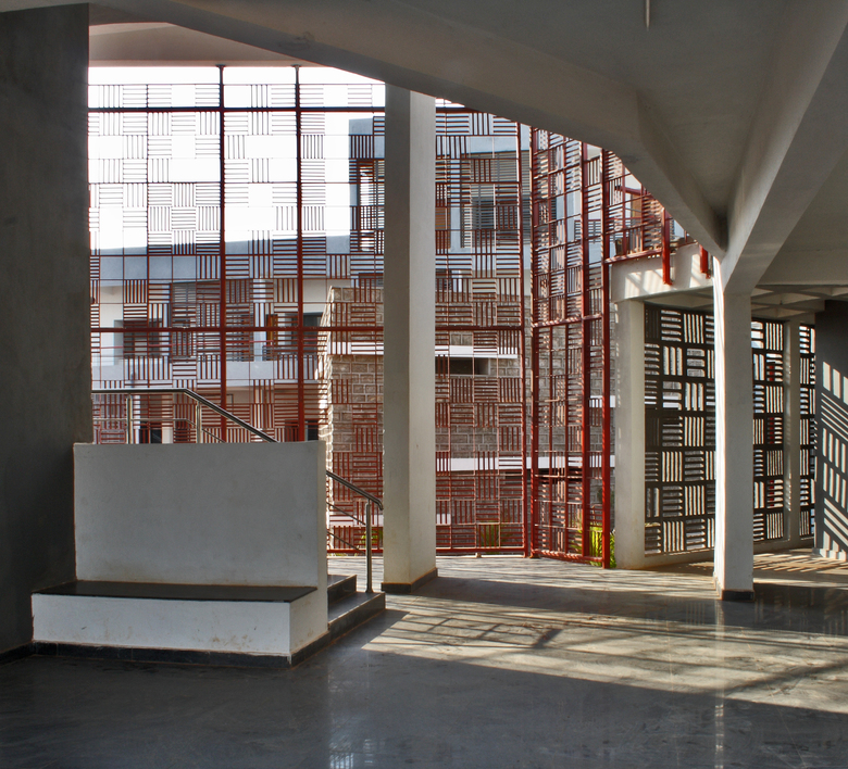 The School of Sciences has been designed to house multiple post-graduate departments of science with teaching and research facilities. The success of the building lies in its control of scale and the complexity of spaces achieved while beginning from a logical analysis of program. The organization allows for tremendous flexibility of function while taking into account the climatic factors and maximizing indirect natural light and minimizing direct exposure to the scorching sun.