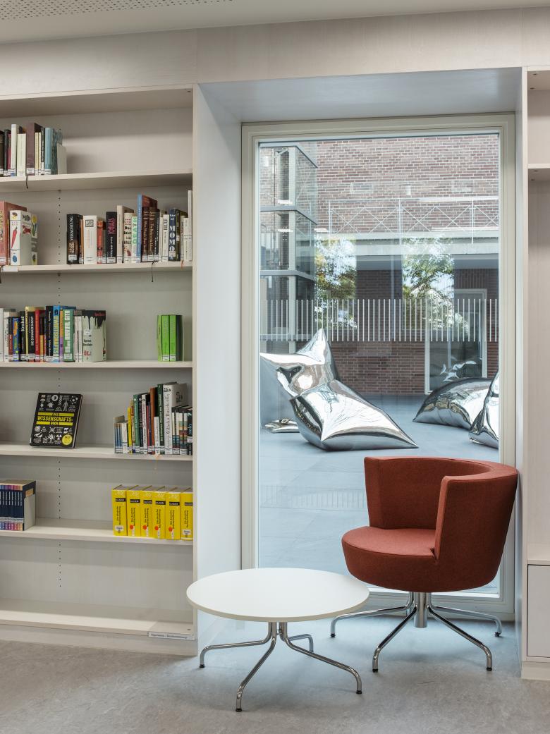 Das Atriumgebäude bildet das Herzstück: Verwaltung und Bibliothek im Erdgeschoss, ein großer Konzertsaal als multifunktionaler Raum und im Obergeschoss ein moderner Lehrerbereich. Das überdeckte Atrium mit Stahl-Glas-Dach verbindet Geschichte und Gegenwart. Das Seminargebäude beherbergt Unterrichtsräume in allen Geschossen und bewahrt die großzügige Pausenhalle.