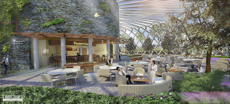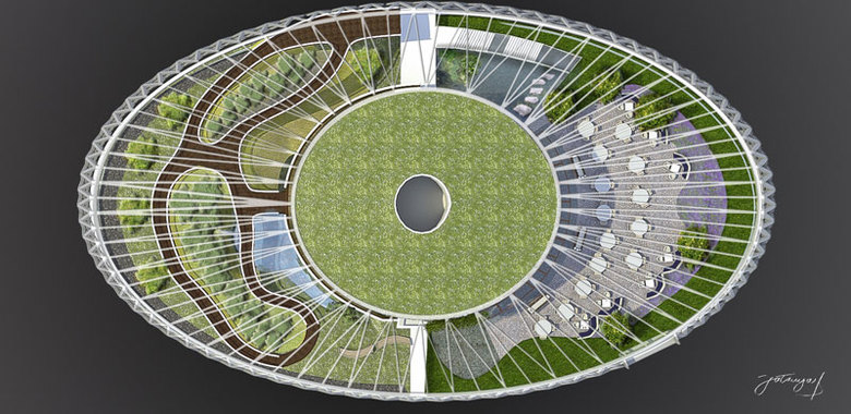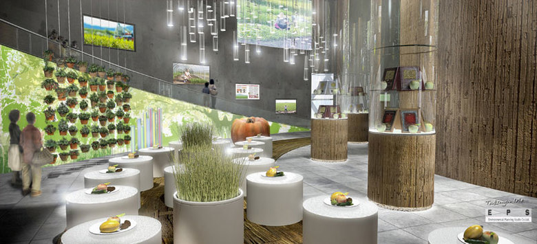 We designed each floor of this facility with a different concept in mind. On the ground floor, there is a food court and souvenir shop, ‘Farmer’s Garden’ and an indoor orchard, ‘Edible Garden’. Upper floors include the main exhibition hall to showcase advanced agri-cultural technology, a classroom to teach children how to cook and the importance of food materials, a specialized library and a lecture hall for people who are especially interested in agriculture from a business perspective.