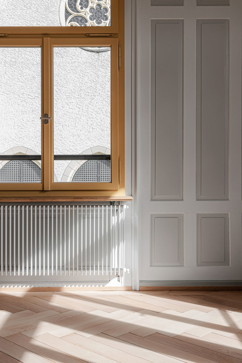 Die katholische Kirchgemeinde Abtwil beabsichtigt, das nach 1904 von August Hardegger erbaute Pfarrhaus einer umfassenden Innen- und Aussenrenovation unter denkmalpflegerischen Gesichtspunkten zu unterziehen. Die Bauherrschaft beabsichtigt, das Pfarrhaus zukünftig als reines Wohnhaus zu nutzten. Die Büroräumlichkeiten der kath. Kirchenverwaltung sollen daher neu in die heutige Mesmerwohnung integriert werden. Durch diese Nutzungsrochade können sämtliche Geschosse im Pfarrhaus genutzt und als Wohnungen ausgebaut werden. Ziel war es es, 3 seperate Wohnungen unter Einbezug des Dachraums zu realisieren.