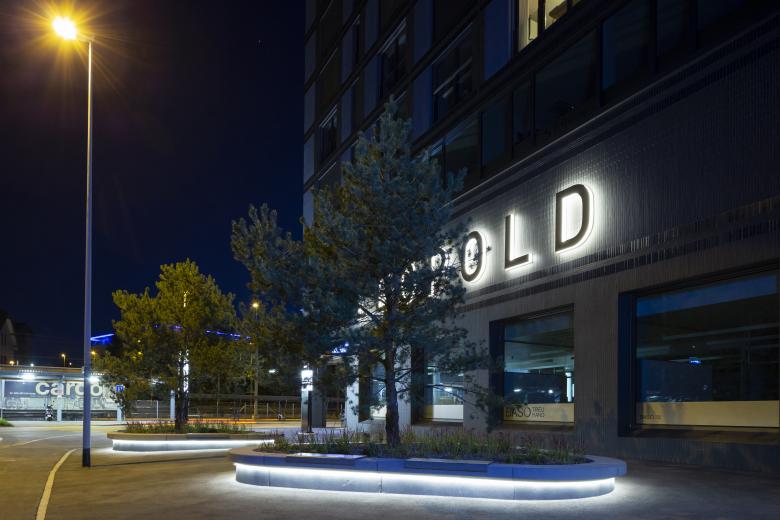 Das Umgebungskonzept des Hauses Leopold bietet ansprechende Aussenräume sowohl für die Parkplatz-Nutzenden wie auch für die Bewohnerinnen und Bewohner des Neubaus. Gegen Norden zur stark befahrenen Ringstrasse mit Wildhecken etwas abgeschottet, öffnet sich das Park & Ride im südlichen Bereich zum Bahnhof und Stadtzentrum hin.