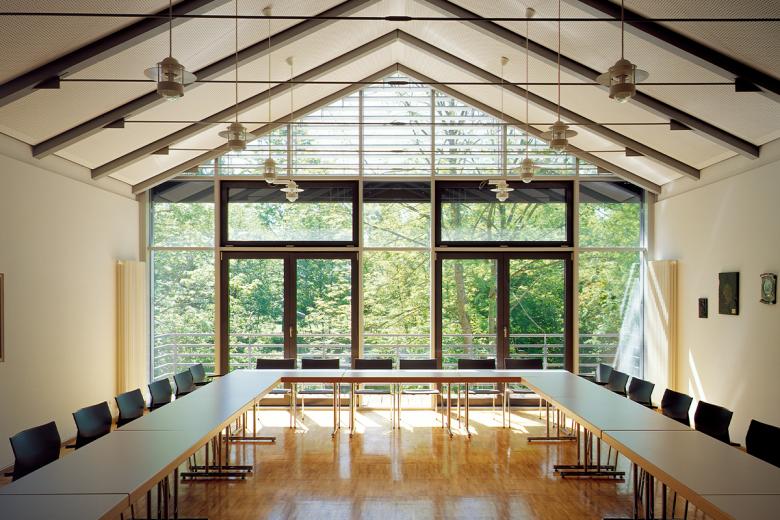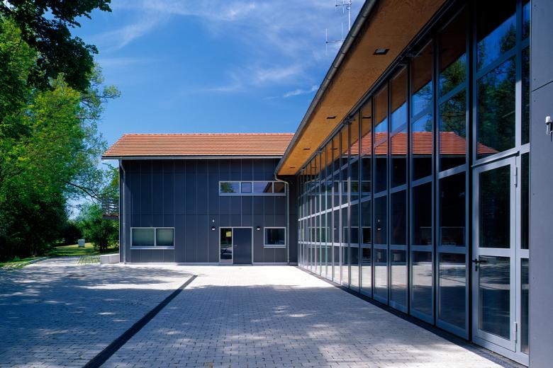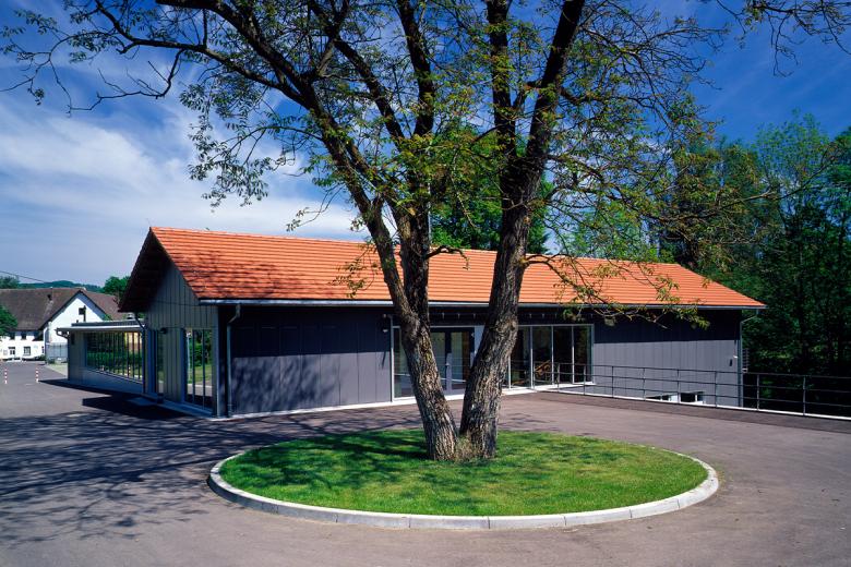 Enjoying a picturesque location at the stream Marbach, the fire brigade Rechberghausen received their new home. The fire station is situated at the intersection of an entire pathway system. The topography results in a level pushed into the slope, housing the vehicle hall. To the right and the left, there are equipment cabinets, sanitary facilities, warehouse and the operations centre. A gallery level in the rear area of the vehicle hall connects the training area with storage and home automation areas.