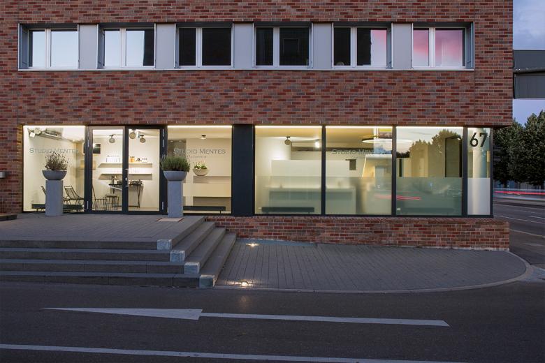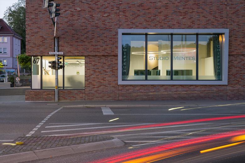 We initially supported the master hairdresser Nico Mentes from Göppingen in his search for a location, which eventually led to the historic industrial area in the west of Göppingen. In the former factory building of the Boehringer company, a large market hall and gastronomic businesses had already established themselves. Today, Salon Mentes is located in the former entrance and reception area of the industrial-historical building.