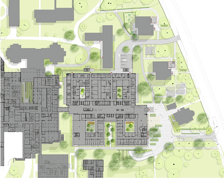 Außenanlagen, Atriumhöfe und extensive Dachbegrünung - Erweiterung Klinikum Konstanz