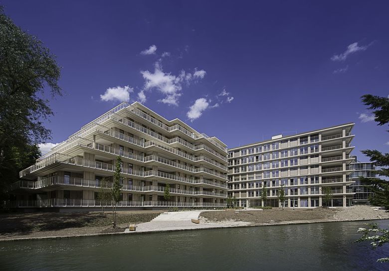 Respect and Character – On behalf of HOCHTIEF Project Development, Hild und K Architekten designed this small ensemble of 7-storey residential and office buildings. Their shapes and terraced facades blend beautifully into the surrounding structures at Munich’s Tucherpark. This administrative district idyllically situated between the Eisbach, a gushing channel branching off the Isar River and the English Gardens was designed in the 1960ties by Sep Ruf on initiative of the Bayerische Vereinsbank and is today protected as a historic ensemble.