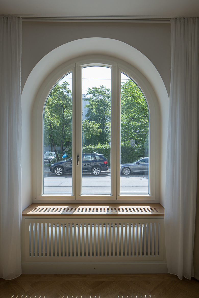 After the general renovation, the building holds 40 offices for the Representatives and three meeting rooms. The charm of the old building remains reflected in the panelled doors and newly installed herringbone parquet flooring. Natural stone inlays in the stairway in the entrance hall are reminiscent of the sophisticated atmosphere of the era it was built in. A cast-iron support uncovered during the restoration has now been exposed and carefully integrated. This witness of a long past time also contributes to the architectural whole: With this modern interpretation of traditional building structures, the House of Representatives in the Ismaninger Strasse has now gained new vigour within its architectural context.