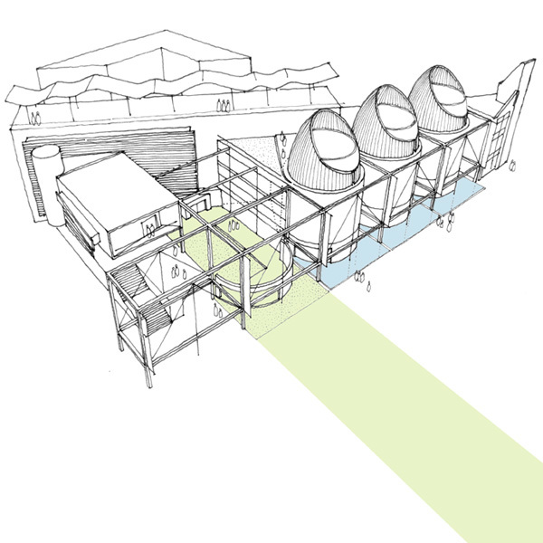 1. 69/70 RESIDENCY ROAD is an additions/alterations proposal. The existing building is being renovated to accommodate 70 hotel rooms on two additional floors. The diagram shows the assemblage of various elements addressing the program arrangement within and the response to the site's location in a dense urban locality.