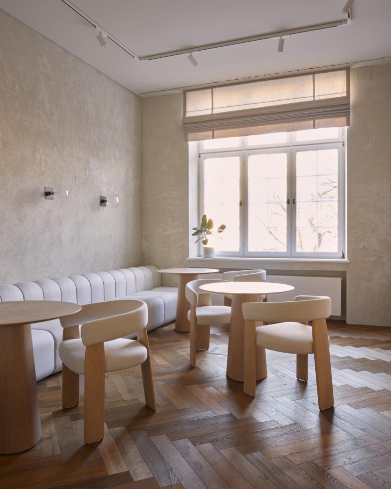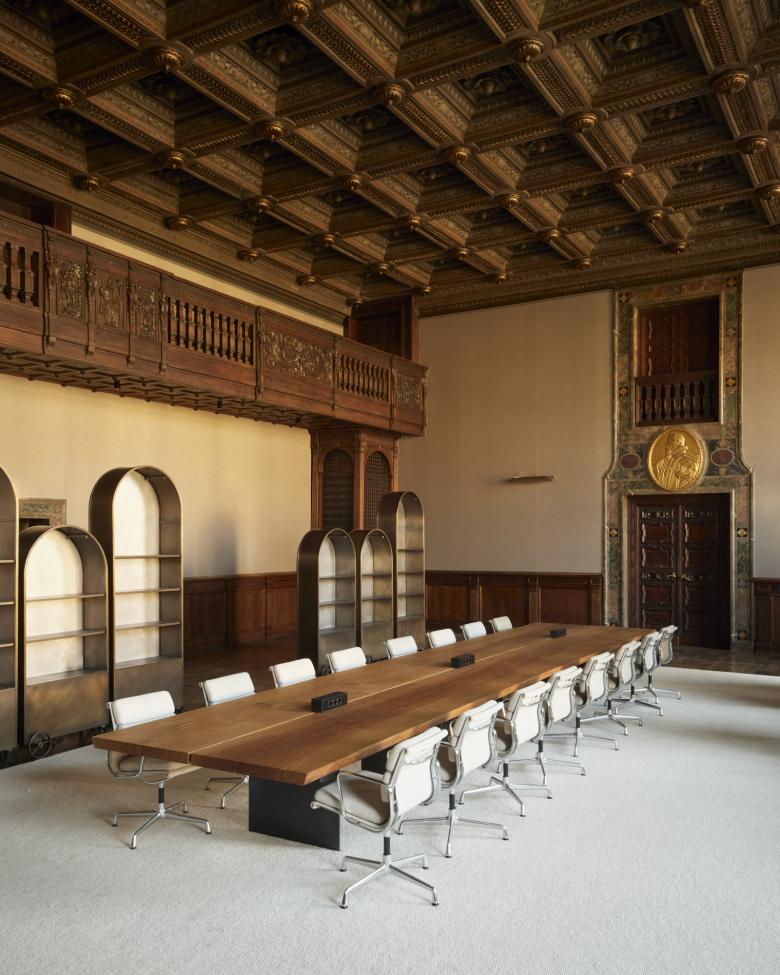 Im Mittelpunkt stand die Transformation und Wiederaufbereitung des denkmalgeschützten Gobelinsaals in einen multifunktionalen Arbeits- und Veranstaltungsraum. Ergänzt wurde dieser durch eine offene Küche, repräsentative Archiv- und Bibliotheksräume sowie ein zusätzliches Ausstellungsdepot – den „Tresor“. Historische Details, Lichtführung und Möblierung wurden sorgfältig aufeinander abgestimmt. So entstand ein Ort, der gleichermaßen Kreativität, Kommunikation und Repräsentation unterstützt.