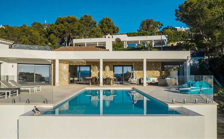 La finca se encuentra situada en el paisaje montañoso de Santa Ponça, en el suroeste de la isla de Mallorca. La fachada exterior es de un blanco reluciente con una parte en piedra natural y se integra a la perfección en la arquitectura circundante, creando un efecto armonioso en el paisaje verde y montañoso.