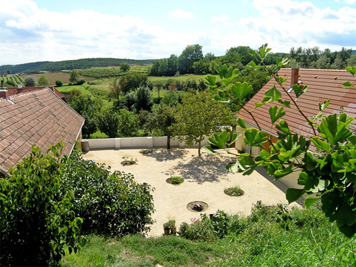 Schiltern is situated where the Lower Austrian Weinviertel region borders the Waldviertel. The landscape is varied and diverse. In this environment, the open space between two tracts of a former wine-growing estate was redesigned. In contrast to the small-scale landscape, the inner courtyard should be developed into a spacious, clearly structured, bright, paved area connecting the buildings tracts and fulfilling the requirements of everyday use. The paved area in the courtyard is in contrast to the lush environment and radiates Mediterranean flair. From the courtyard it is possible to enjoy views of the landscape. The entire plot of land stretches out across the courtyard and along several terraces leading up the slope to the church. The usage of every terrace is dedicated to a specific theme. The wine terrace, the orchard and the vegetable garden, for example, are used for own supply.