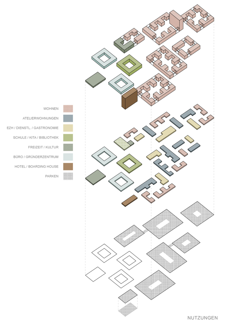 Der Pavillonstruktur der IBM-Gebäude von Egon Eiermann liegt ein Prinzip zugrunde, welches sich in der Moderne wie auch bereits in antiken Strukturen finden lässt: der fließende Raum. Diese Struktur wird in dem städtebaulichen Konzept für das neue Quartier aufgegriffen und zu einer Abfolge von Räumen weiterentwickelt, die mit der umgebenden Landschaft verbunden werden. Neubau und Bestand bilden eine Einheit indem sie sich in ihren Dimensionen am Maßstab der Eiermann-Bauten orientieren. Der bestehende Wald wird als eine der großen Qualitäten des Gebiets verstanden. Folglich sind die Baufelder in den umgebenden Waldsaum eingebettet und lassen ihn unmittelbar bis an die Gebäude heranreichen. Der Campus erhält so eine unverwechselbare Identität.
