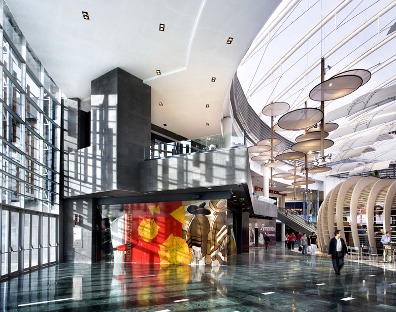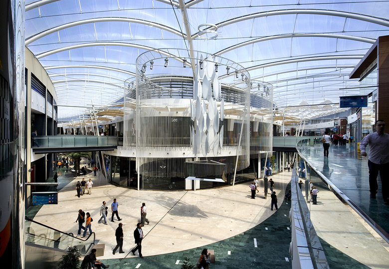 Regional shopping mall in a residential area to the southwest of Madrid, which will promote the expansion and improvement of the infrastructure in the area. Islazul has a public vocation: it is a place for gathering and social relations, an island conceived from respect for the environment and bio-climatic architecture. The project emphasizes this idea with volumes of curved profiles and rolling façades to define large spaces that are discovered as they are visited; bright spaces with natural elements and vegetation that create peaceful environments and walkways. One of the important elements of the building is the transparent ETFE roof, a state-of-the-art material allowing for large lightweight structures and climate control of the interior.
